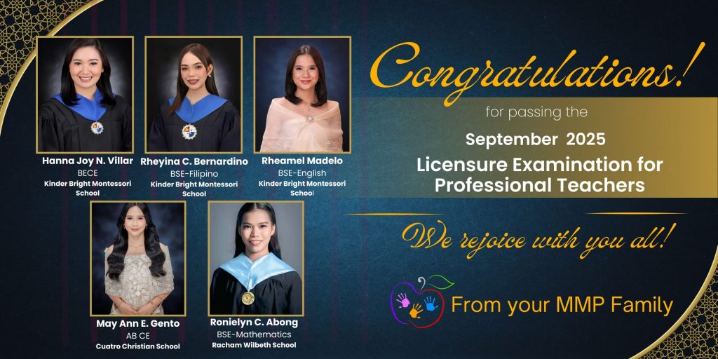 Finally, let us give a big round of applause to our amazing MMP teachers who passed the Teachers Licensure Examination last September 21, 2025, with results released in December 2025. Congratulations on this wonderful achievement! We celebrate your hard work, faith, and perseverance. Well done!