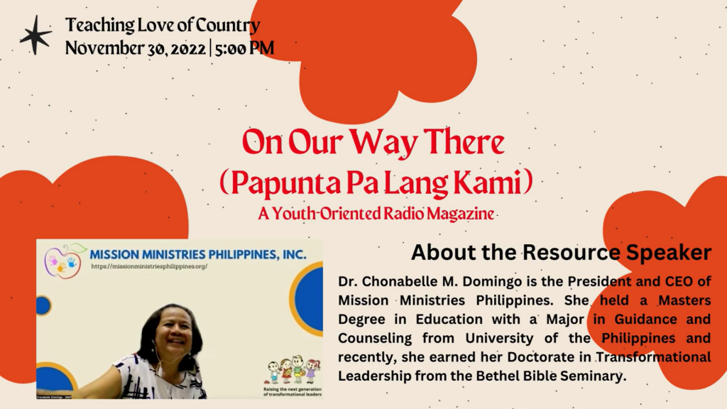DZAS through the Memo ni Mommy Interview – November 13, 2021 – Mission Ministries Philippines, Inc. was featured via Radio Program over 702 DZAS. Memo ni Mommy is a Christian program that empowers mothers to perform their roles as mothers effectively. MMP Kidprenuer materials was featured.
